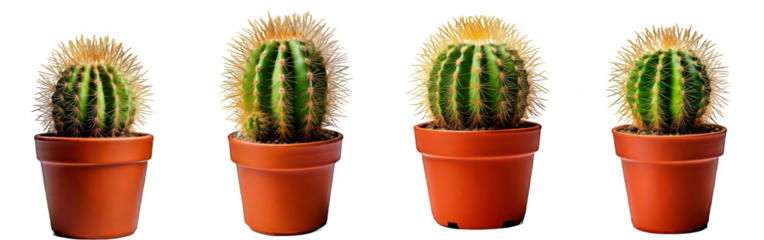 Two Barrel Cactus in Clay Pots Isolated on PNG Transparent Background