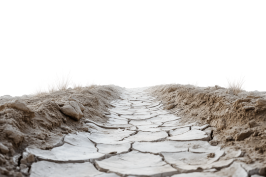 Rocky Martian landscape with sandy terrain, isolated on transparent cutout background