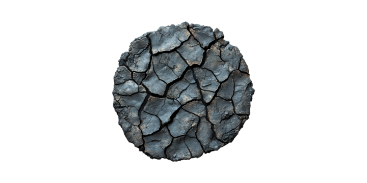 Dry cracked earth representing drought and global warming concept, parched soil texture with transparent background