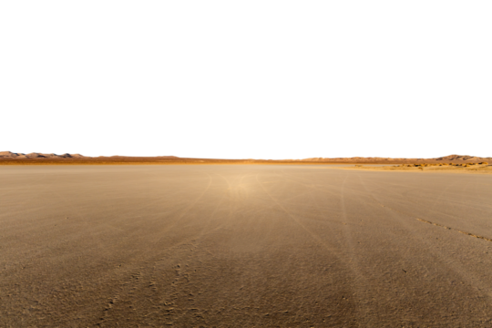 Drying lake in a desert landscape, cut out