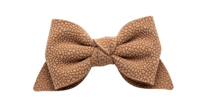 Isolated light-brown hair bow made of patterned fabric, with a cute vintage style for girls