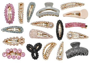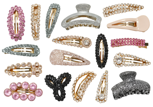 A sparkling rhinestone hair clip adds elegance to hairstyles on a transparent background
