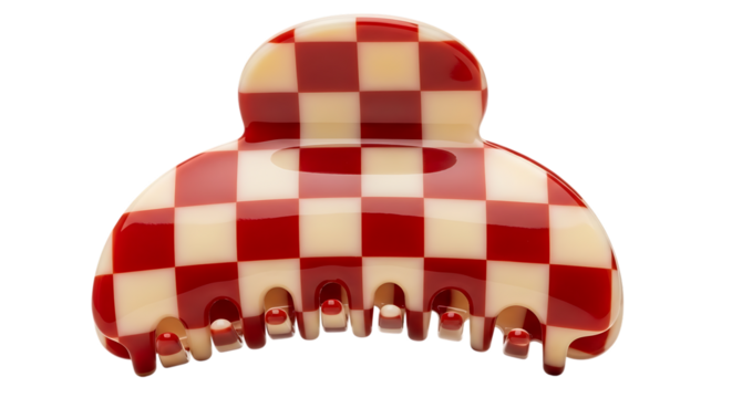 Illustration of red and white checkered claw hair clip, isolated on transparent background
