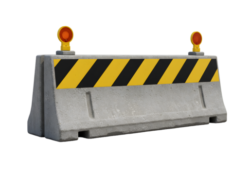 Durable concrete barrier with reflective stripes and safety lights for road construction, ensuring traffic control and pedestrian safety in urban environments