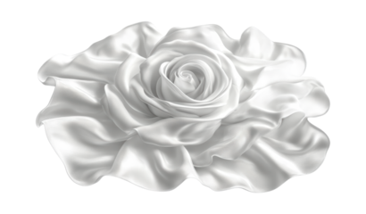 Elegant Pure White Rose Sculpture with Delicate Petals and Soft Flowing Curves, Romantic Floral Art Relief Design Isolated on Transparent and White Background