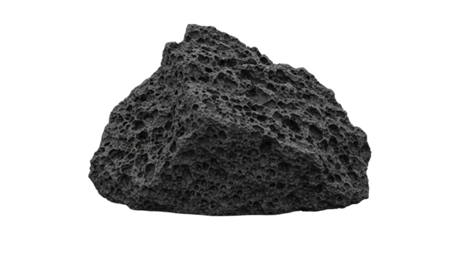 Pile of basalt stones isolated on transparent background. Pile of volcanic rocks.