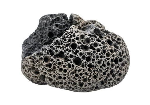 Volcanic igneous lava stone isolated on transparent or white background. PNG