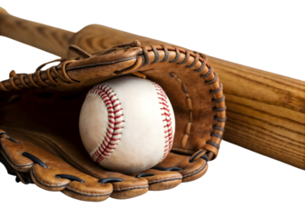 Baseball glove and ball, ready for the game, cut out transparent