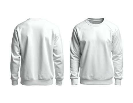 White casual t-shirt, front and back view on transparent background