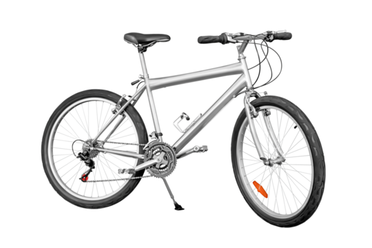 Silver colored unpainted entry-level mountain bike png with transparency