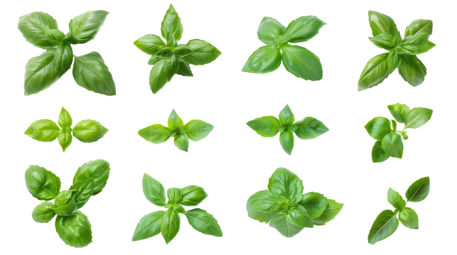 'fresh basil leaves isolated on transparent background'