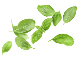 Fresh basil leaves isolated on a clean white background, perfect for cutouts and culinary designs