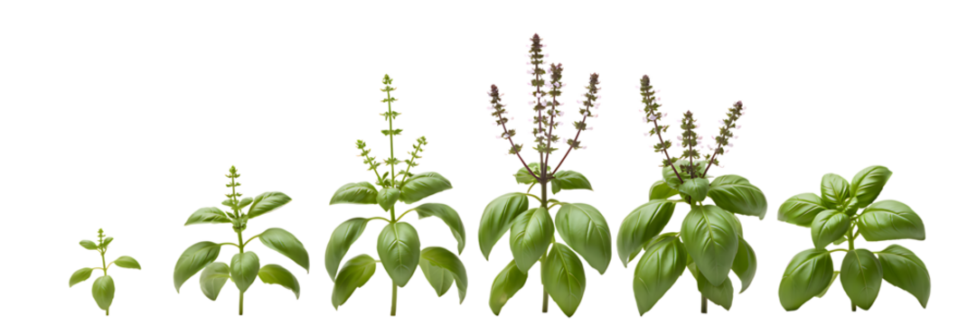 Fresh green basil herb plants culinary ingredient two bunches isolated transparent background
