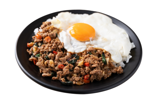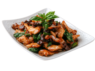 Stir-Fried Chicken with Holy Basil on isolated on transparent png background. Generative ai
