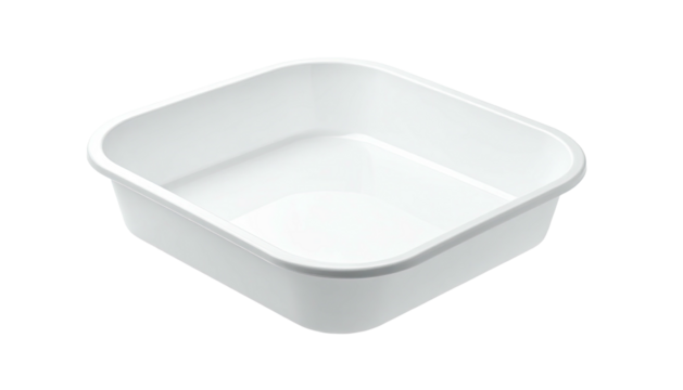 A pristine white, square-shaped plastic basin with slightly rounded corners and a smooth, shallow interior