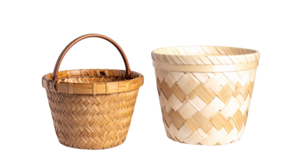 Traditional Basketry Duo Composition with Two Unique Woven Designs Isolated on Transparent Background