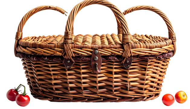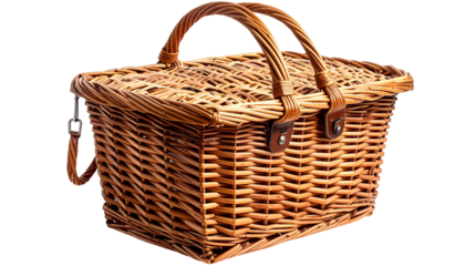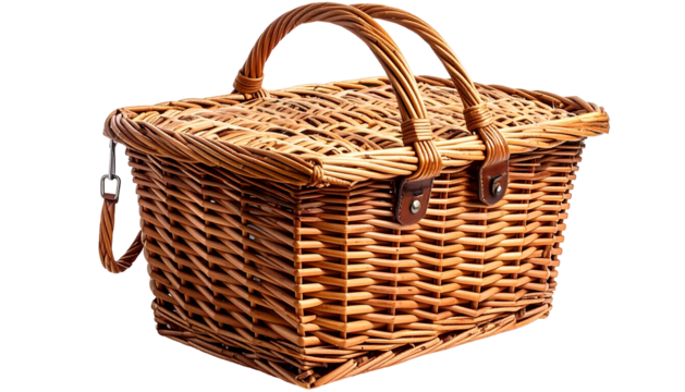 Handwoven bamboo basket, removable lid, traditional basketweave craftsmanship, sustainable home storage and organization, transparent png.