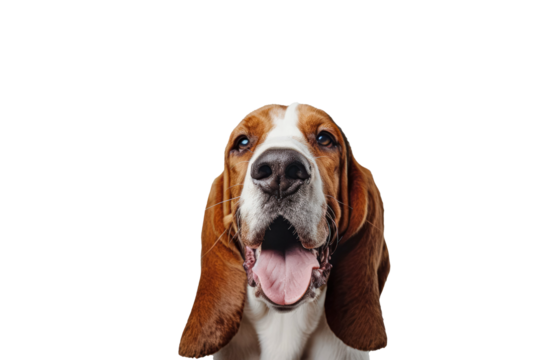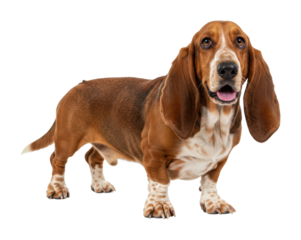 Basset hound with long ears and brown coat. Cut out PNG