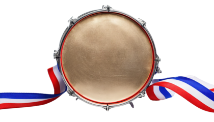 Parade Drum with Tricolor Ribbon Representing Bastille Day Celebration on Transparent Background PNG Parade Drum and Tricolor Ribbon Symbolizing Bastille Day