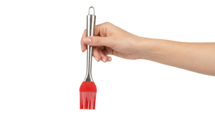Hand holding silicone basting brush
