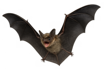 Flying brown bat with wings spread isolated on white background perfect for wildlife and nature illustrations