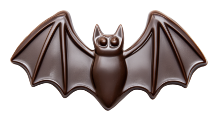 Chocolate bat figure on a transparent background, shaped like flying bat