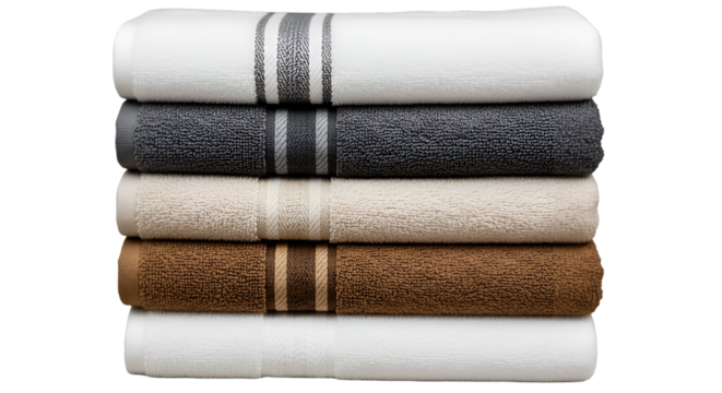 stack of neatly folded pastel towels, isolated on white background, household stock photo
