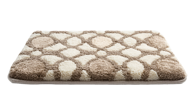 Soft, plush bath mat with a textured surface and rounded corners, ideal for bathroom decor and comfort. isolated on white background and transparent background
