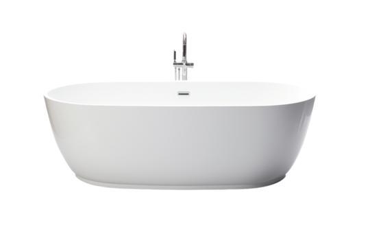 A white bath tub is seen positioned on top of a white wall, creating a minimalist and modern bathroom aesthetic. on a White or Clear Surface PNG Transparent Background.