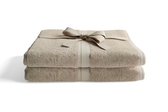 Beige Towel Bundle Tied with a Ribbon on a transparent background