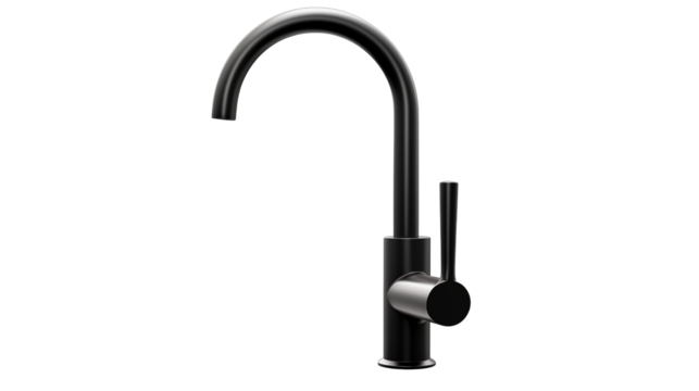 Sleek Black Modern Kitchen Faucet Design Image isolated on transparent background