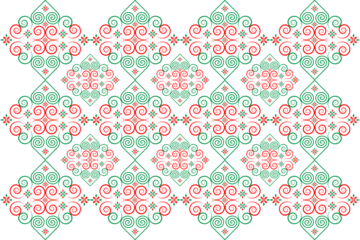 Hmong ethnic fabric patterns are spiral lines connected in shapes and flowers, which combine traditional and modern designs, used in clothing design.