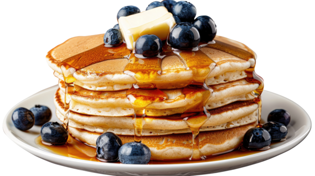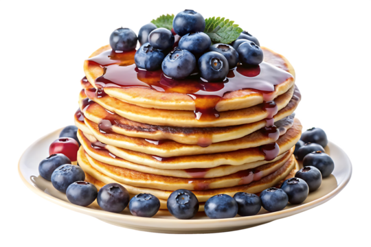 a delicious plate of blueberry pancakes image isolated on a transparent