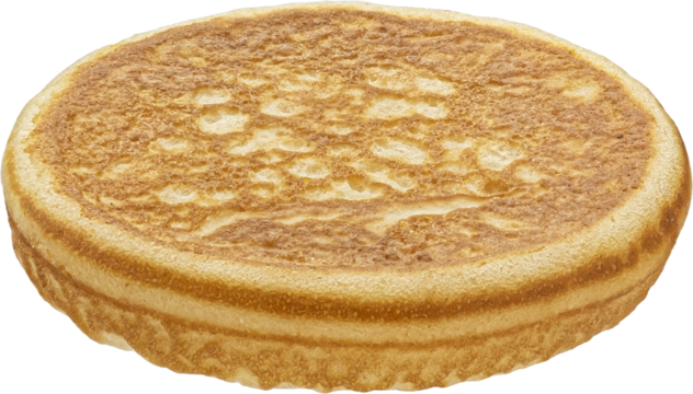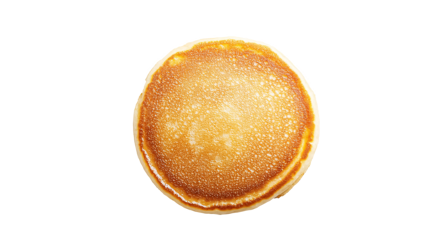 Golden brown pancake isolated on transparent background, round sweet breakfast food, top view, prepared batter