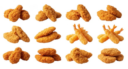 Assortment of crispy battered fish fillets, cut out - stock png.
