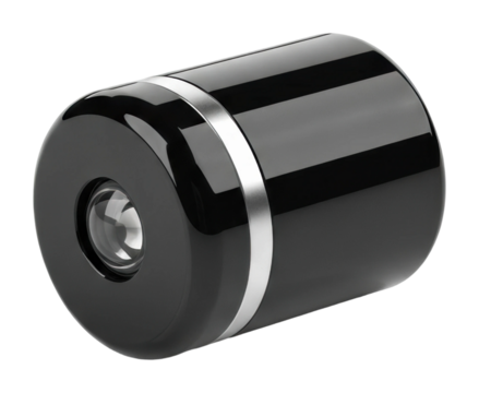Futuristic energy cell or battery with glowing green core isolated on transparent background