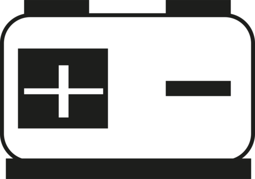 Minimalist black icon of a battery showing positive and negative terminals