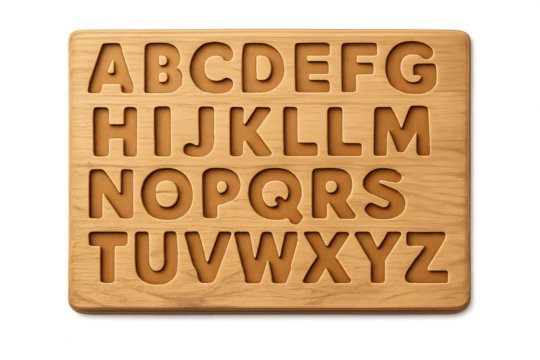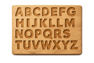 Wooden Alphabet Puzzle Board with a transparent background design.