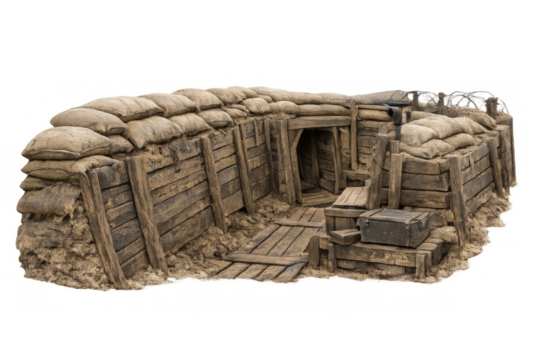 World war 1 trench dugout with sandbags