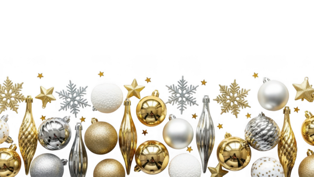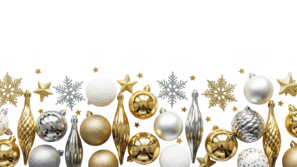 Gold and silver christmas decorations isolated on transparent background