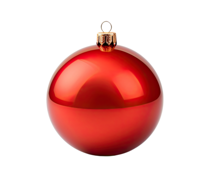Christmas ornament isolated on white background. Red christmas ball with gold ribbon