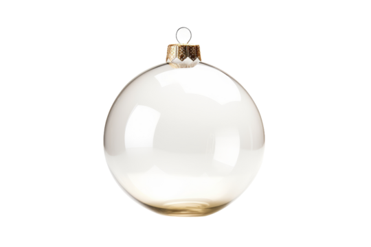 christmas ball bauble glossy transparent glass blank christmas silver hanging from to isolated on transparent background.