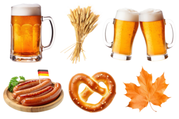 Transparent oktoberfest elements: beer, sausage, green hat illustration