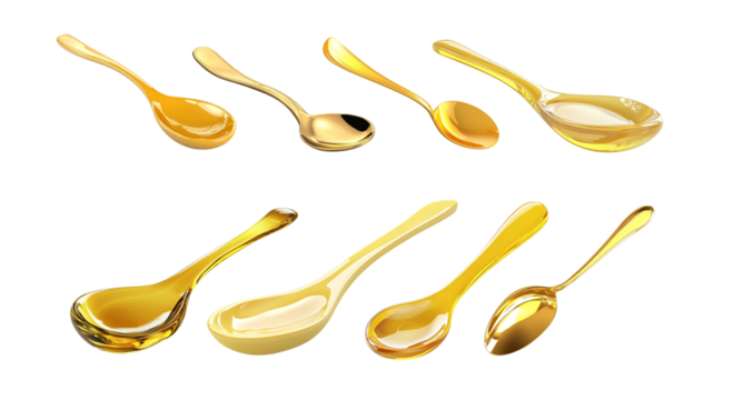 Pack Golden Spoons Set Against a Transparent Background for Culinary, Food Photography, or Ingredient
