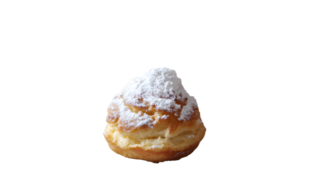 Bavarian cream puffs with powdered isolated on white background, PNG