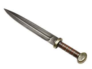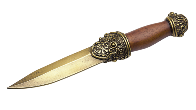 High-quality image of a Roman gladius, flat side view, isolated on transparent background ,PNG.