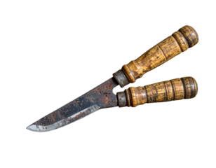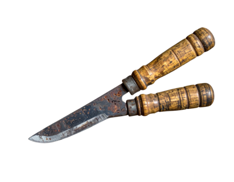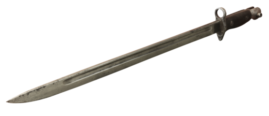 Antique rusty bayonet knife, isolated on transparent background, war relic, realistic texture, clean minimal composition