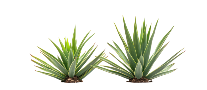 Aloe vera, Scimitar, and Spanish bayonet species of Yucca aloifolia in medium and small sizes, displayed clearly in front alignment, Transparent background, PNG file