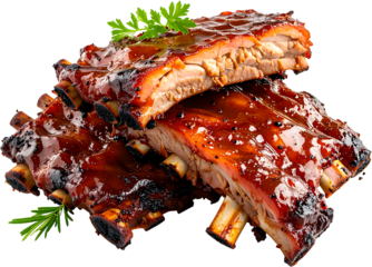 Transparent digital food order illustration with bbq ribs and chicken wings