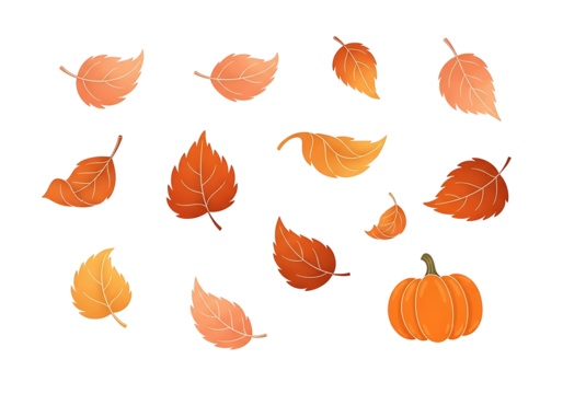 Vibrant autumnal leaves and a pumpkin float against a deep black backdrop.